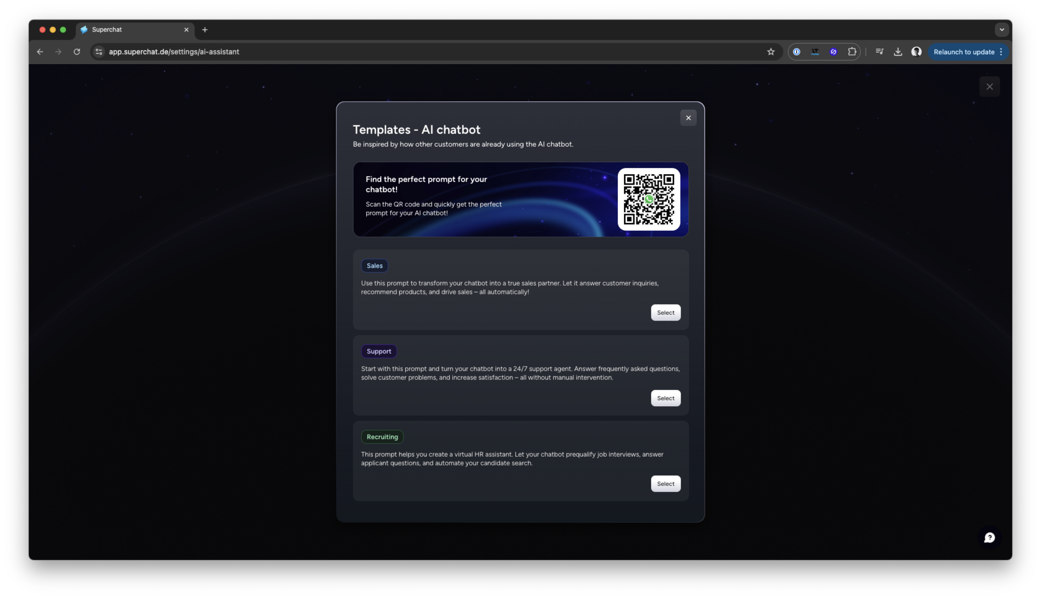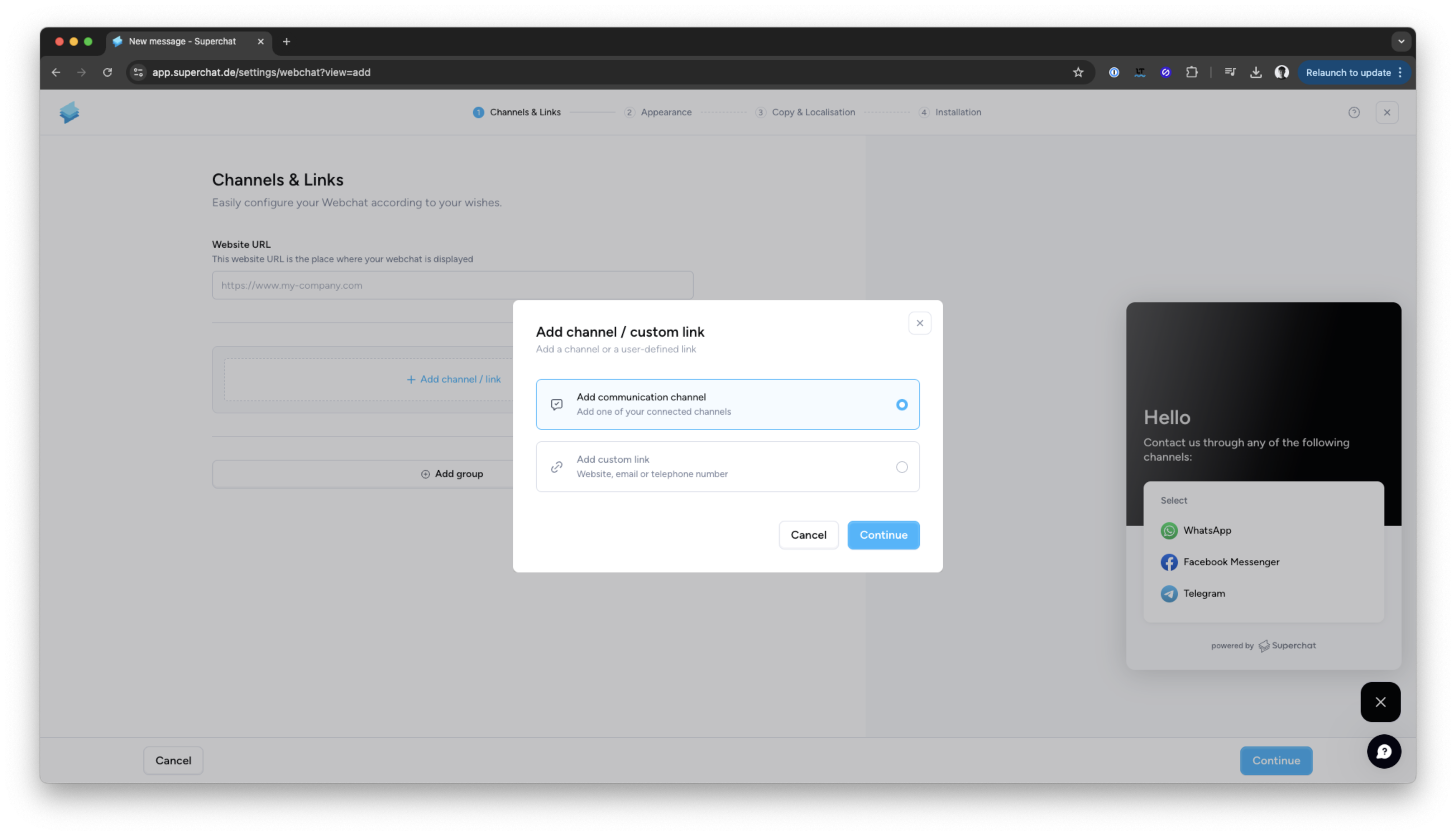 1. Webchat in Superchat einrichten und WhatsApp als Kanal wählen