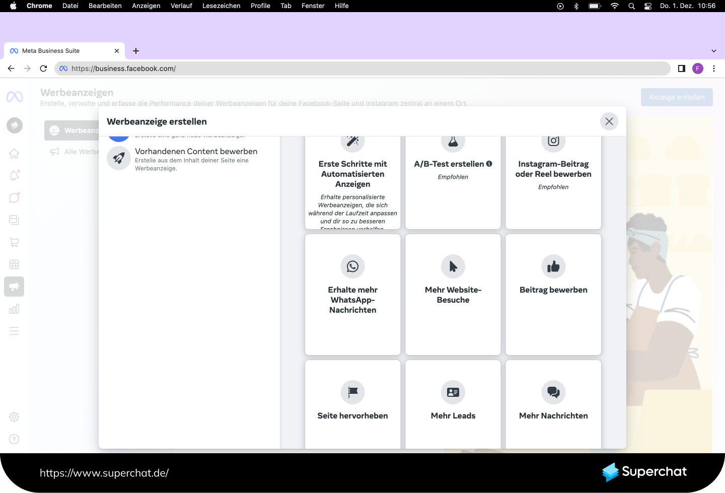 Der Facebook Business Manager dient als Tool für die Erstellung und Verwaltung von Werbeanzeigen. Sie können entweder den klassischen Werbeanzeigenmanager nutzen oder auf die neue Werbeanzeigenfunktion in der Meta Business Suite zurückgreifen.