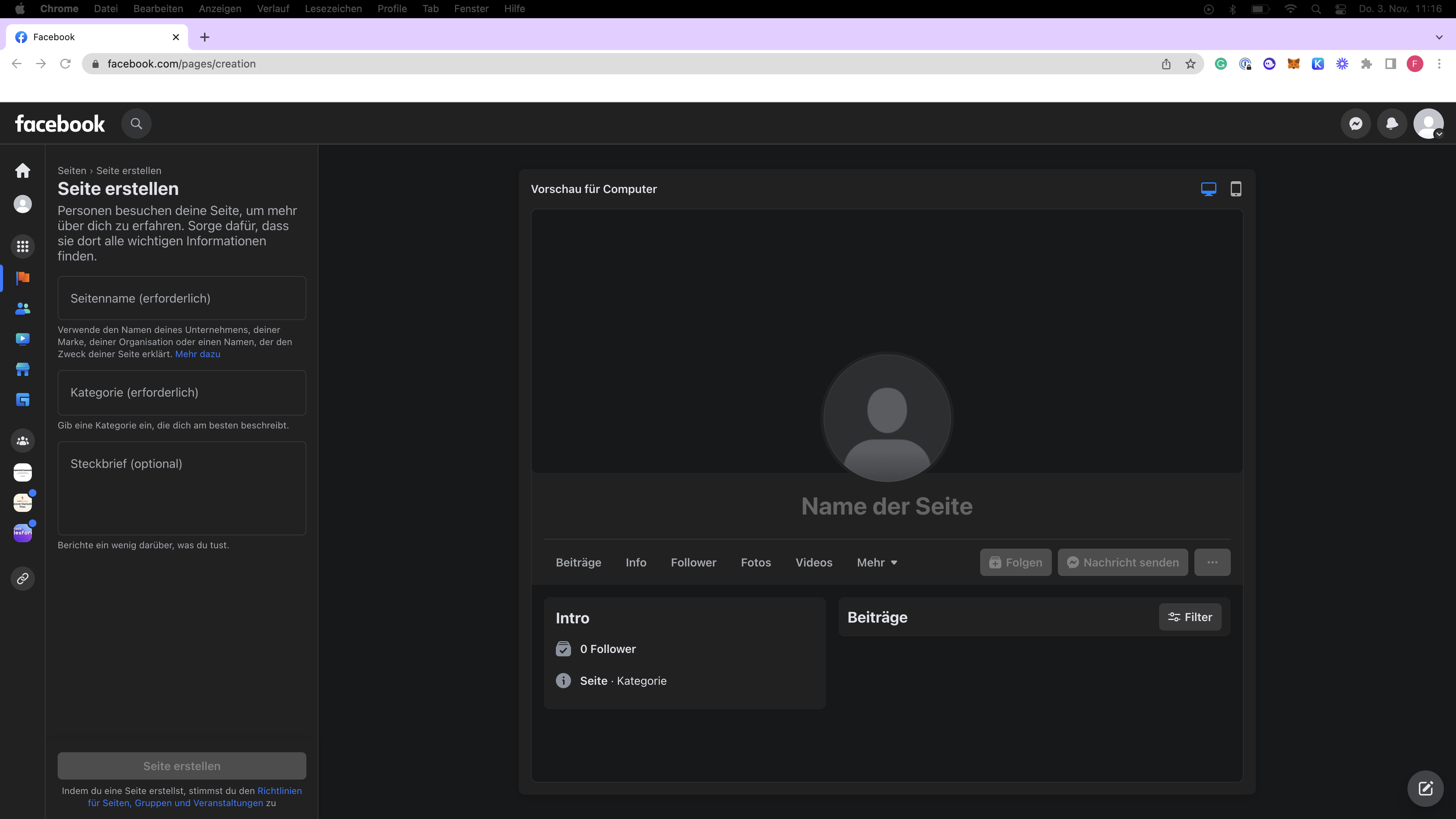 - Rufen Sie https://www.facebook.com/pages/creation auf.