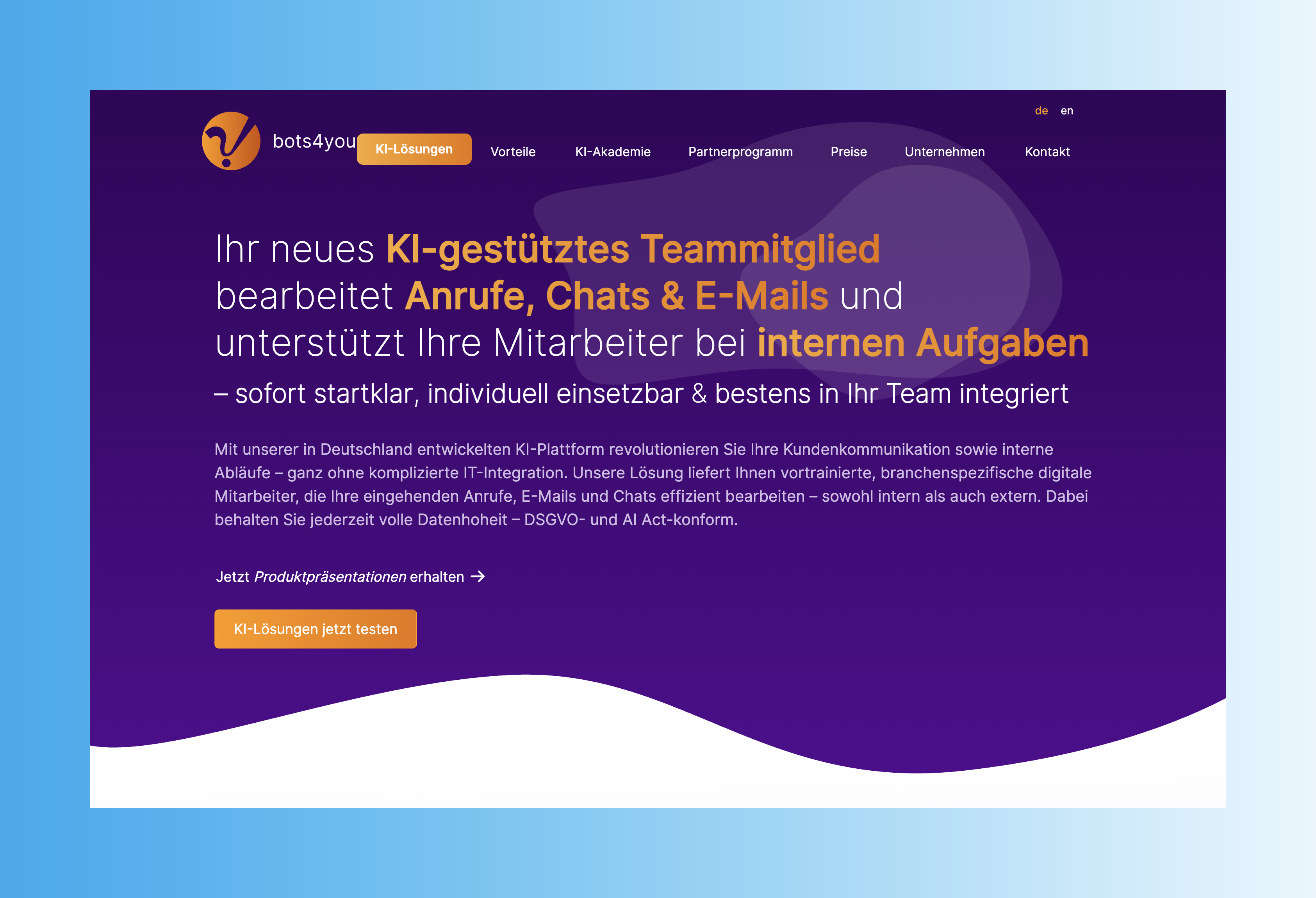 Bots4you übernimmt die telefonische Erstbetreuung durch einen intelligenten Voicebot, der Anrufer vorab kategorisiert und einfache Anfragen direkt löst. Komplexere Beratungsgespräche werden gezielt an spezialisierte Mitarbeiter weitergeleitet.