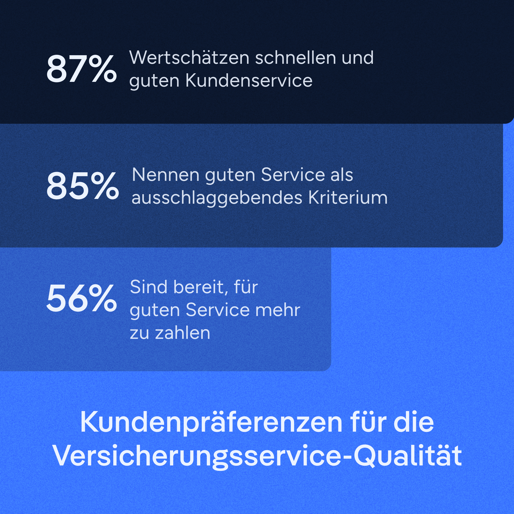 Versicherungsagenturen stehen in einem intensiven Wettbewerb – nicht nur mit anderen lokalen Anbietern, sondern zunehmend auch mit Online-Versicherungsplattformen und Neo-Versicherern. In diesem Umfeld wird die Geschwindigkeit der Kommunikation mit Kunden zu einem echten Wettbewerbsvorteil. Wenn Anfragen zeitnah beantwortet werden, steigert das die Kundenzufriedenheit und sorgt für eine engere Bindung an die Agentur. Laut der Deloitte-Studie bewerten 87 % der Kunden schnellen und guten Kundenservice als entscheidend bei der Wahl ihres Versicherers. Des weiteren betrachten 85% der Befragten guten Kundenservice als ausschlaggebendes Kriterium bei der Auswahl eines Anbieters. Für einen Anbieter mit gutem Service sind 56% der Studienteilnehmer bereit mehr Geld auszugeben.