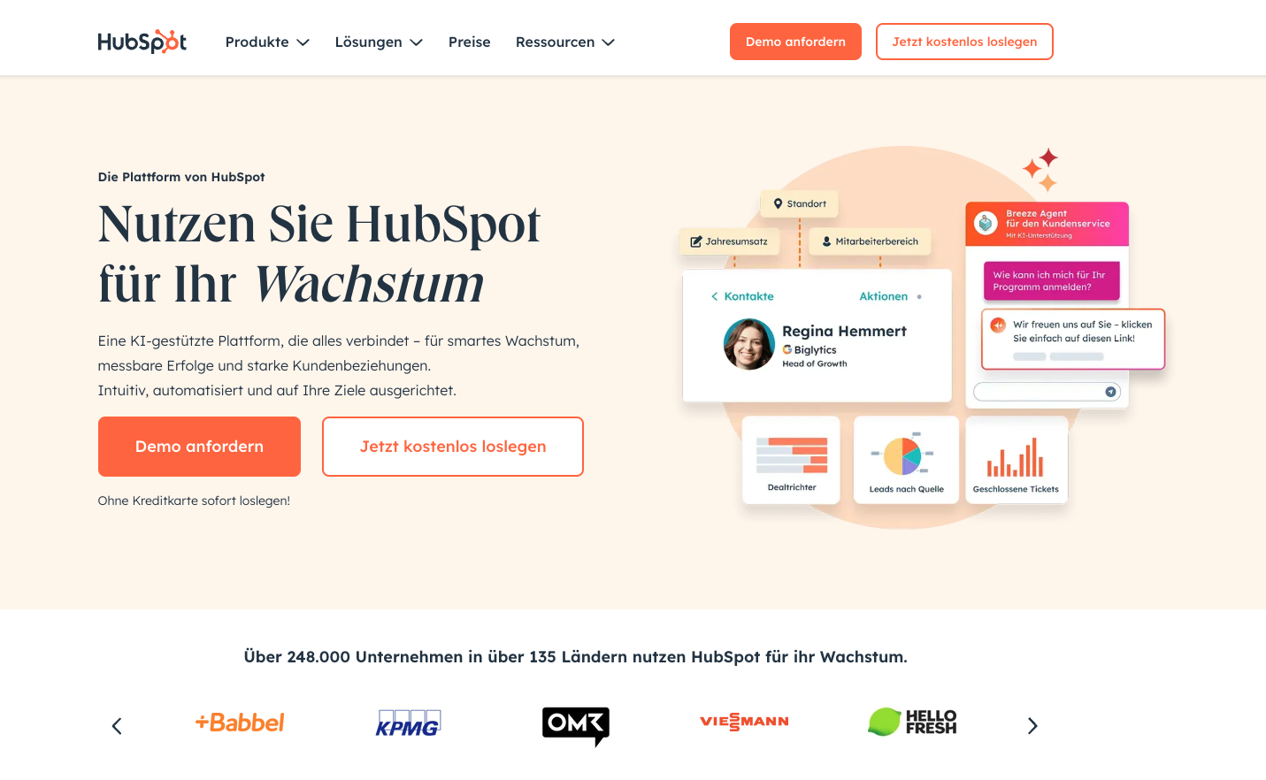 HubSpot mit Hauptsitz in Cambridge (USA) und einem deutschen Standort in Berlin bietet im Rahmen seines Marketing Hubs eine leistungsstarke WhatsApp-Integration. Die Software unterstützt Unternehmen bei der Erstellung personalisierter Kundenerlebnisse über verschiedene Kommunikationskanäle hinweg.