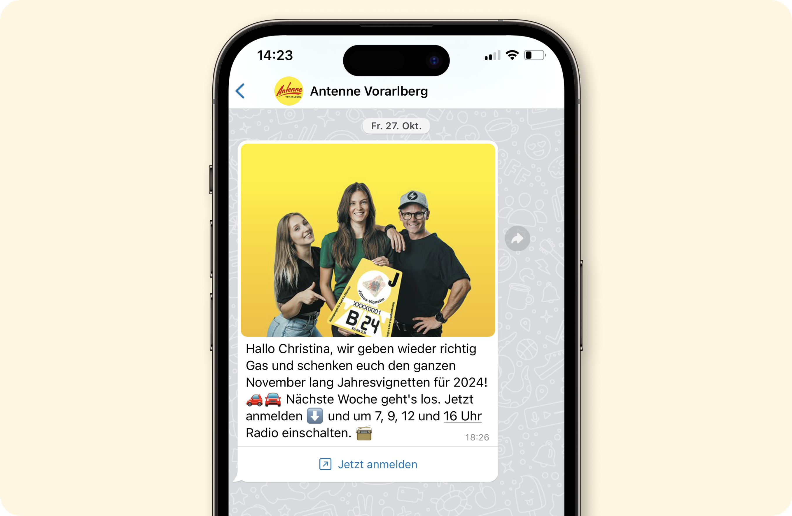 Schritt für Schritt baut sich der Radiosender eine Community auf WhatsApp auf. Mittlerweile hat Antenne Vorarlberg mehrere tausend Opt-ins eingesammelt. Um Fans und Hörer auf WhatsApp aufmerksam zu machen, bietet das Team verschiedene Touchpoints.