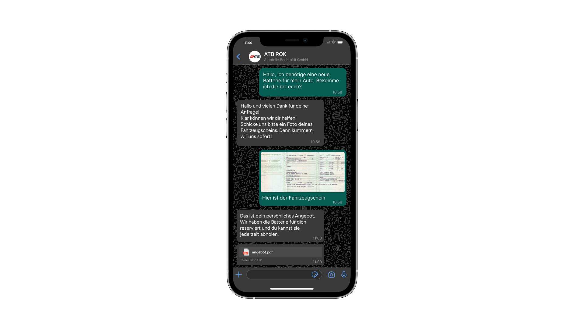 Die Kunden gaben von sich aus ihre WhatsApp-Nummern als Kontaktdaten an, um die Interaktion mit dem Autoteilehändler zu erleichtern. So lassen sich zum Beispiel längere Produkt- oder Fahrgestellnummern mit einem einfachen WhatsApp-Foto schneller und sicherer versenden als mit einer geschriebenen E-Mail oder einem Telefonat.