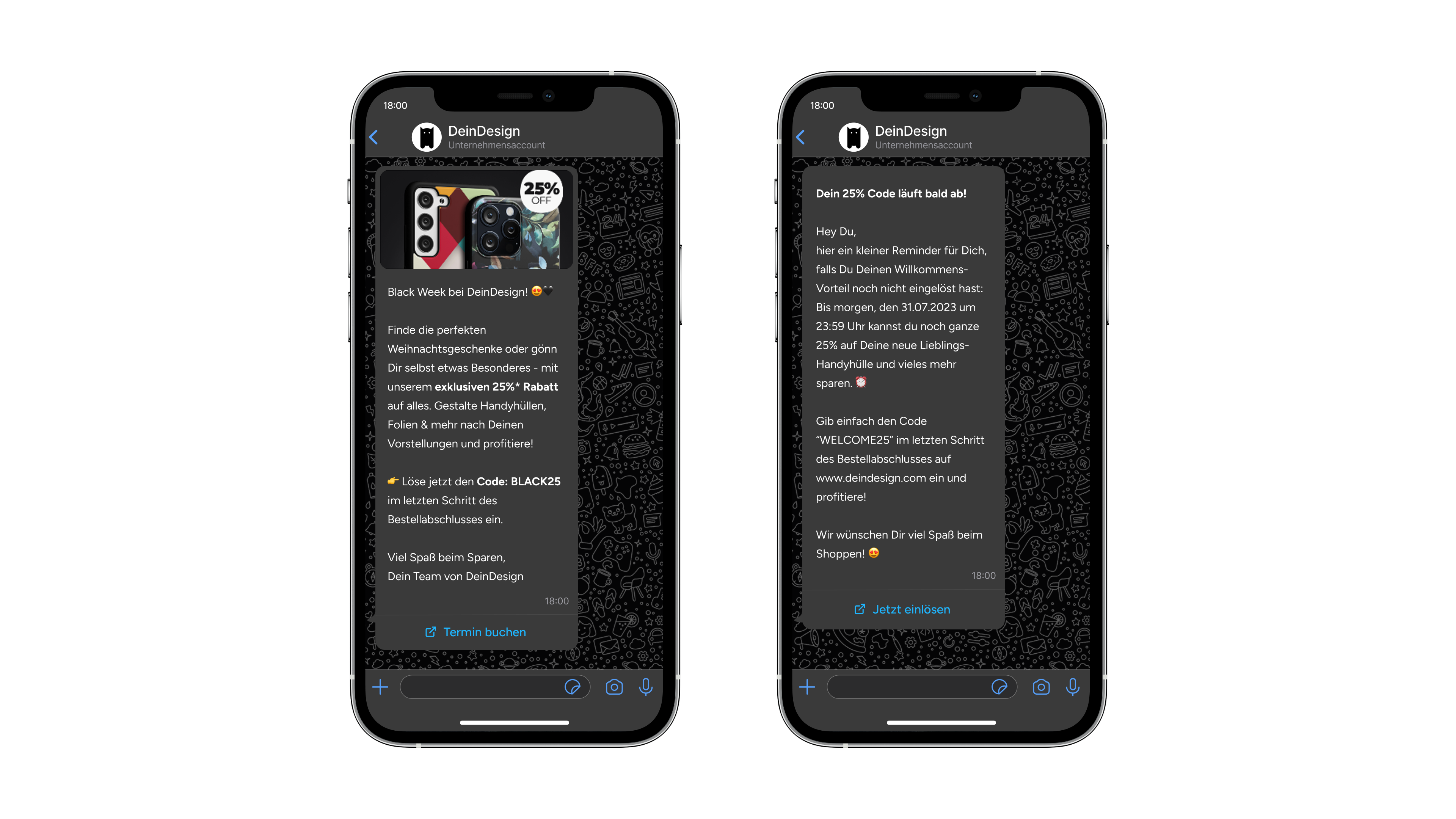 DeinDesign informiert den bestehenden Kundenstamm mithilfe von WhatsApp Kampagnen über exklusive Rabattaktionen.