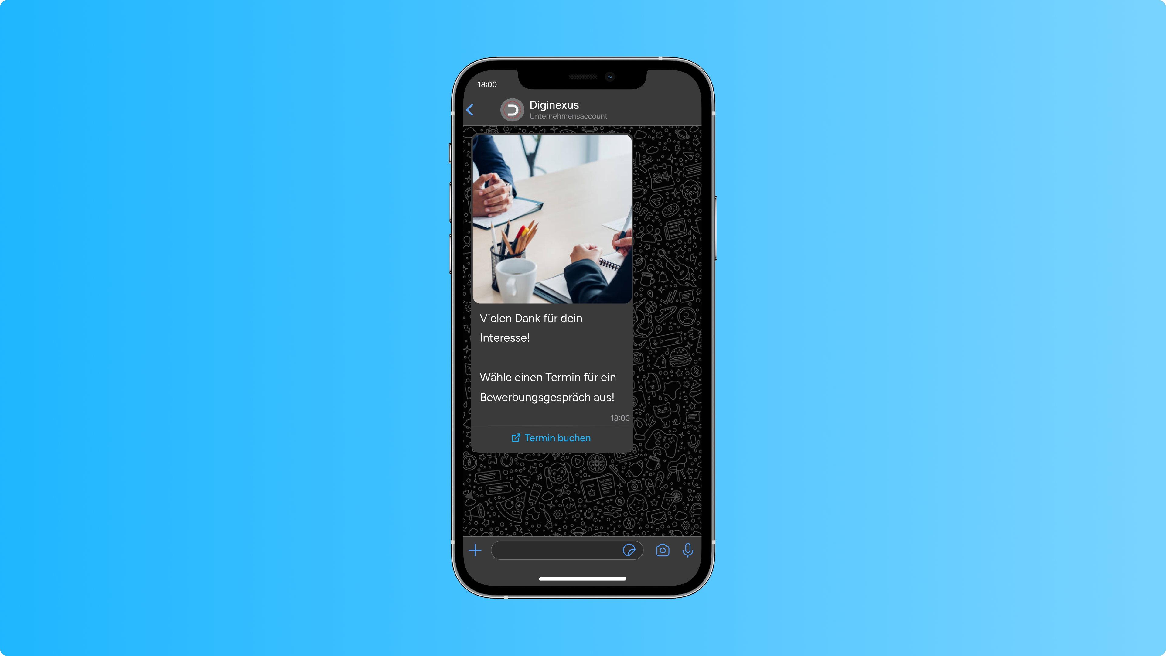 Sobald ein potentieller Kandidat das Formular auf Facebook oder Instagram ausgefüllt hat, schickt die Marketing-Agentur mit einer zeitlichen Verzögerung eine automatische WhatsApp-Nachricht heraus.