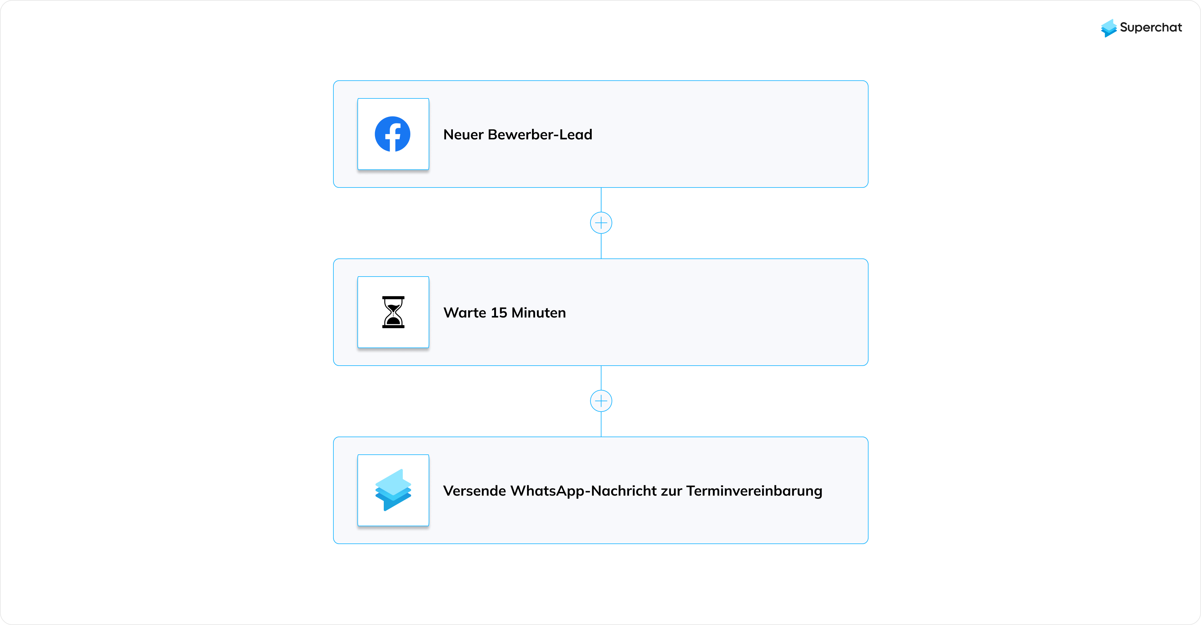 - WhatsApp-Newsletter mit einer Öffnungsrate von durchschnittlich 84 % für eine bessere Konvertierung, falls Bewerber auf die ersten beiden Kontaktanfragen nicht reagiert haben.
