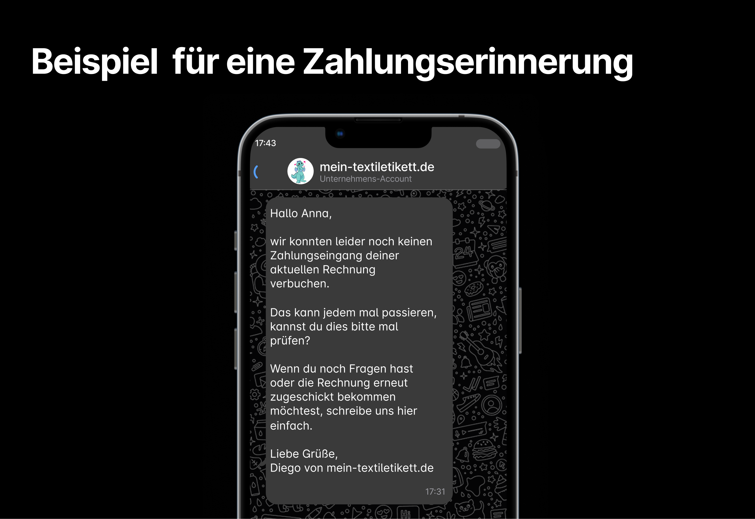 WhatsApp ist für mein-textiletikett.de der wichtigste Kanal: Rund 80 % aller Anfragen gehen über den Messenger ein. Darüber werden nicht nur Fragen beantwortet, sondern auch Fotos von Designs und Produkten ausgetauscht.