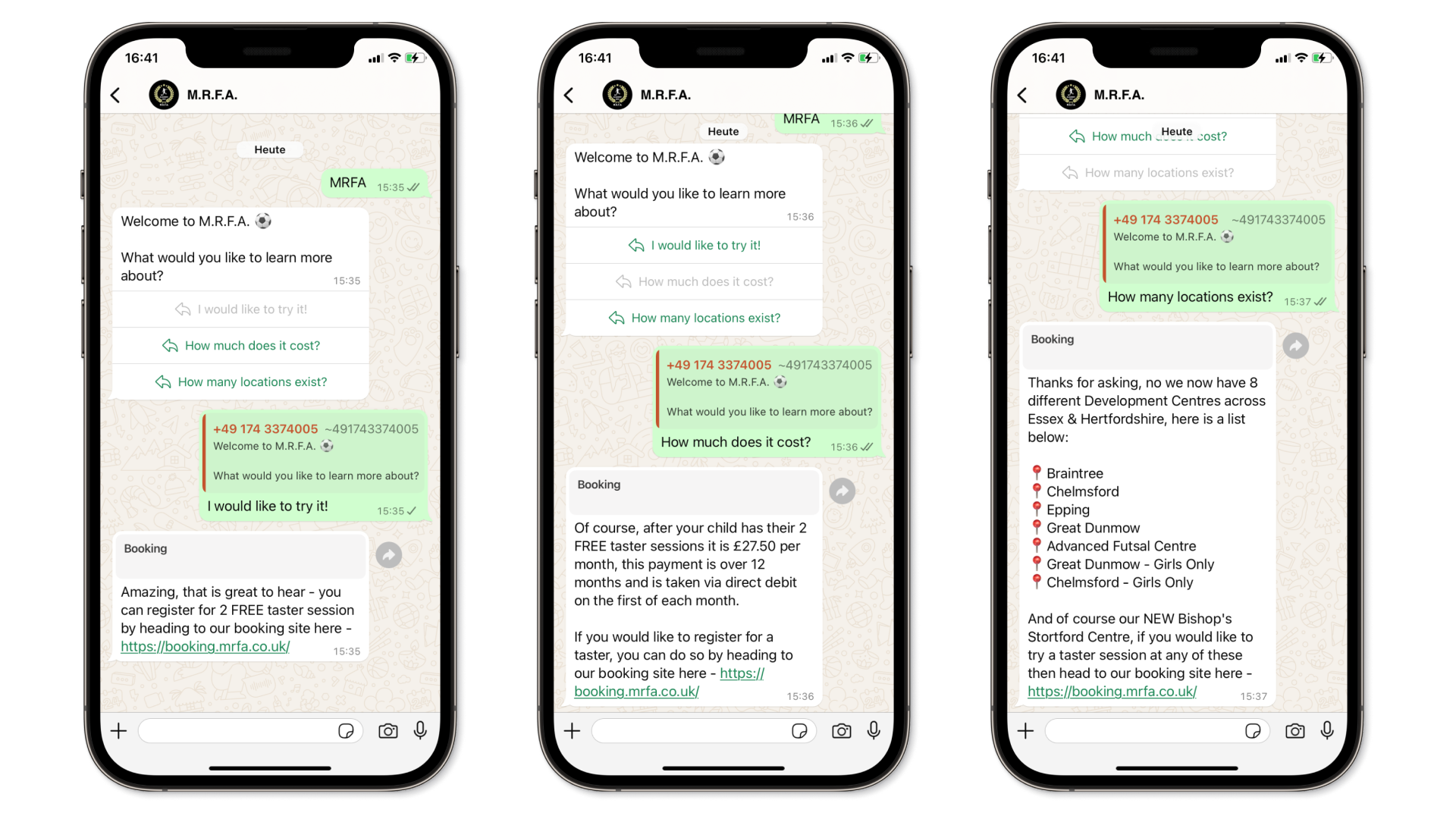 Die Kombination aus automatisierten Antworten und WhatsApp-Newslettern ermöglicht es M.R.F.A., zielgerichtetes Marketing zu betreiben und Kunden mit relevanten Programmangeboten für verschiedene Standorte zu erreichen. Dieser Ansatz entspricht den bevorzugten Kommunikationsstilen der Kunden, was zu besserem Engagement (70-85 % Öffnungsrate), gesteigerten Rückmeldungen und einer höheren Konversationsrate führt.