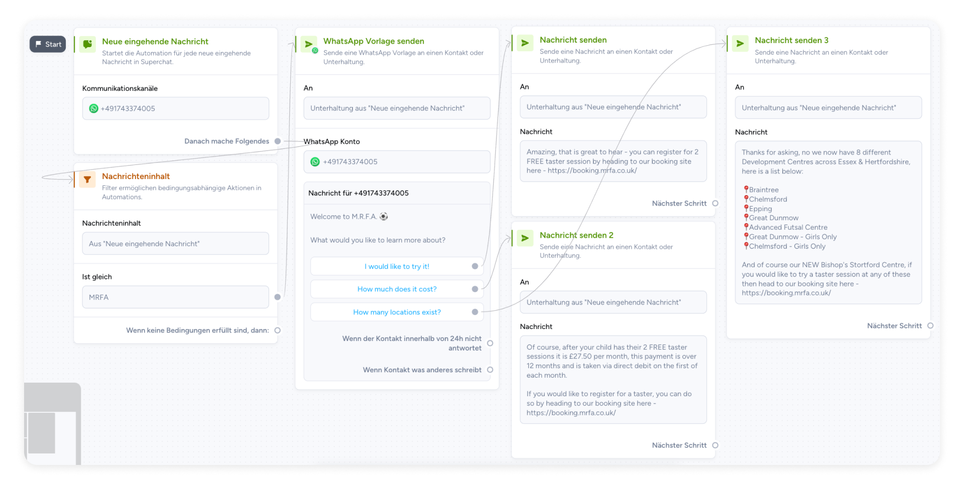 Hier ist ein Beispiel für eine Automatisierung von M.R.F.A. in Superchat: