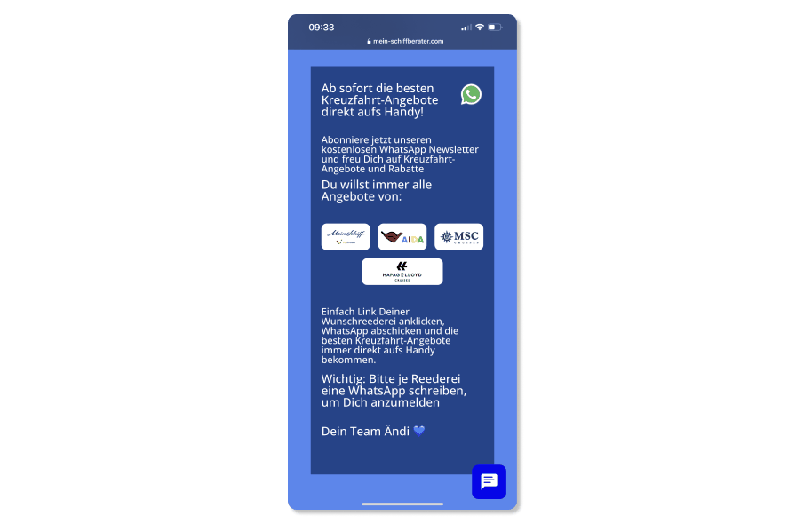 WhatsApp Newsletter Beispiel 5: Mein Schiffberater